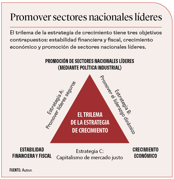 A raíz del creciente nacionalismo económico y de las tensiones geopolíticas, cabe esperar que el establecimiento de sectores líderes en los países siga siendo un objetivo de política de los gobiernos que buscan promover sus intereses nacionales. En este contexto, el trilema de la estrategia de crecimiento que se describe a continuación puede ayudar a las autoridades a encontrar un equilibrio entre los objetivos de crecimiento económico, estabilidad y sectores líderes.