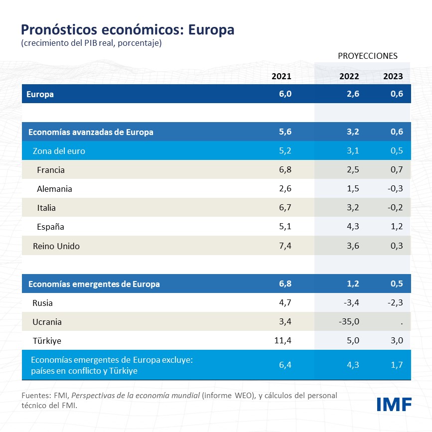 La guerra de Rusia en Ucrania está pasando una factura cada vez mayor a las economías de Europa. El empeoramiento de la crisis energética ha deprimido el poder adquisitivo de los hogares y ha elevado los costos para las empresas, algo que las políticas públicas han compensado solo parcialmente. Los bancos centrales están actuando de manera más resuelta para reducir la alta y persistente inflación a los niveles fijados como meta; al mismo tiempo, las condiciones financieras se han tornado más restrictivas. Fuera de la región, el crecimiento se ha moderado en China y Estados Unidos, y la inflación, que es la más alta en varias décadas, ha llevado a un endurecimiento generalizado de las políticas monetarias.