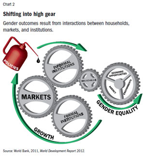 How gender equality evolves as development proceeds can best be understood through the responses of households to the functioning and structure of markets and institutions—both formal (such as laws, regulations, and delivery of government services) and informal (such as gender roles, norms, and social networks).