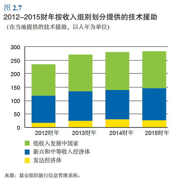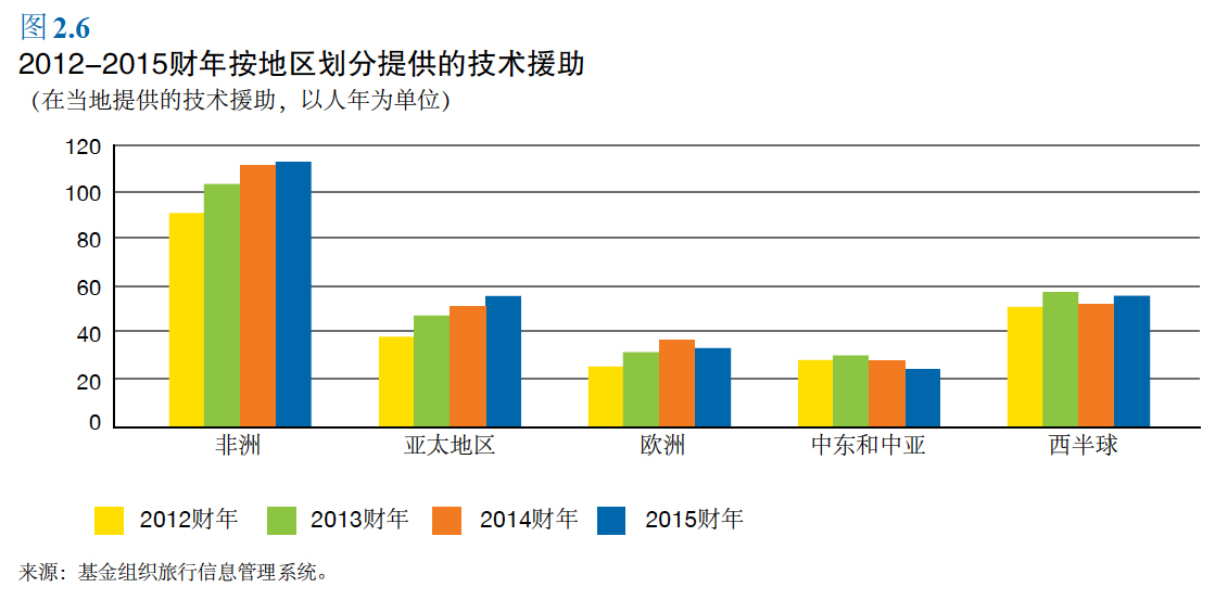 عربي 中文 Français 日本語 Русский Español Section Notes 能力建设 技术援助 培训 捐助方对能力建设的支持 政策建议 数据 基金组织与成员国官员分享其专长并向 其提供培训,这就是它所称的“能力建设”, 其目的是帮助各国建立强有力的体制,并 提高制定和实施稳健宏观经济和金融政 策的能力。能力建设工作与基金组织的监 督和贷款活动密切相联,成员国非常看 重这项工作。 技术援助和培训活动迅速扩大,以满足成员国 的大量需求。 能力建设占基金组织2015 财年行政 支出的四分之一左右。 执董会在2014 年4 月召开非正式会议之后, 于2014 年9 月批准了一个新的关于基金组织 能力建设政策和做法的声明。这份声明取代了 2001 年关于基金组织技术援助的政策声明, 纳入了执董会批准的2013 年能力建设战略文 件中列出的原则。 2009 年以来捐助资金支持的基金组织能力建 设活动的强劲增长在2015 年减缓,主要反映 了体制和资源约束。2015 财年的能力建设活 动直接支出总额(包括外部融资和基金组织融 资)为2.42 亿美元,相比2014 财年的2.37 亿 美元,增长了2%(图2.5)。外部融资的能 力建设活动的增长率从2013 财年的17.4% 和 2014 财年的7.2%,下降到2015 财年的1.7%。 回到顶端 技术援助 基金组织2015 财年提供的技术援助在增加, 主要是在撒哈拉以南非洲、亚太和西半球地区 (图2.6)。 基金组织所有技术援助的一半左右 仍然是提供给低收入发展中国家(图 2.7)。 2015 财年,撒哈拉以南非洲所占技术援助的 比例最大,因为该地区拥有大量低收入发展中 国家。 应成员国要求,基金组织最近增加了货币和金 融以及统计方面的技术援助(图2.8)。财政 问题仍然是基金组织提供技术援助的主要领 域。基金组织还在开发一套财政评估工具,以 加强财政监督的分析基础,指导结构性财政改 革,并确定技术援助的优先点。七项主要的财 政评估工具目前已在使用或正在接受测试(见 专栏2.5)。 主要的财政能力建设活动 基金组织继续迅速地满足不同国家的长期能力 建设需要和更为紧迫的技术援助需求。在乌克 兰,基金组织制定了具有广泛基础的技术援助 计划,为各种项目提供支持,其中包括旨在提 高当局制定和实施健全宏观经济和金融部门政 策的能力的改革,以及养老金和能源补贴改革, 建立管理国有企业的框架,检查公共财政管理 体系,以及评估税收政策问题(包括对拥有较 多财富的个人征税,建立防止腐败的框架,社 会保障缴费,农业和国际征税,以及地方政府 征税权力)。在埃及和突尼斯,基金组织为公 共财政管理及税收和收入管理改革提供支持。 基金组织一直向资源丰富的国家提 供建议,帮助它们降低收入波动性 和扩大税基。 在安哥拉,基金组织提供了燃料补贴和收入征 管现代化方面的技术援助。在坦桑尼亚,基金 组织支持了其管理来自天然气生产收入的财政 和预算政策框架的准备工作。在肯尼亚,基金 组织协助设计和实施新的石油财政制度。基金 组织开发了新的自然资源收入模板,目的是提 高这些收入的透明度,并帮助动员国内收入。 蒙古是第一个从这个新模板中受益的国家。该 模板得到“采掘业透明度倡议”的认可,这项 倡议是促进公开和负责地管理自然资源的全球 标准。在黎巴嫩,基金组织针对该国正在兴起 的天然气部门,与当局举办了多次关于税收政 策问题的互动型研讨会。基金组织还协助采用 新的消费者价格指数,新指数的编制方法显著 改善(包括覆盖面扩大)。 面对西非的埃博拉疫情,基金组织从总部以远 程方式以及通过非洲地区技术援助中心提供了 急需的技术援助。这种援助包括,向利比里亚 提供关于实施半自主收入权的最终阶段以及计 划实行增值税的建议。另外,还向有关国家提 供了远程技术援助,包括向塞拉利昂提供了改 善税收征管机构对采掘业评估和征收税收的能 力的技术援助,以及向几内亚提供了保持公共 财政管理能力和进一步改善国民账户统计的技 术援助。 主要的货币和金融部门能力建设活动 在货币和金融部门领域,基金组织深化了有关 工作,并启动了新的技术援助项目,以促进中 低收入国家的金融稳定。通过双边和区域方式 实施了综合的技术援助项目,目的是识别和管 理金融部门脆弱性,增强监管框架,支持基金 组织的贷款规划,以及培养体制能力。 例如,在柬埔寨、缅甸、尼泊尔和 菲律宾提供的银行监管技术援助帮 助这些国家建立起根本的监管基础 设施,以维护金融稳定。 缅甸还获得了货币操作、外汇市场操作和中央 银行金融管理方面的支持。加勒比地区各国获 得了银行监管和银行处置方面的技术援助。巴 巴多斯、伯利兹、牙买加和苏里南获得了改善 国内债务市场运作和中央银行业务方面的援 助。基金组织还向刚果民主共和国、索马里和 南苏丹等脆弱和冲突后国家提供了货币和金融 部门支持。 在南苏丹,通过加强中央银行体制能力和框架 来支持金融和宏观经济稳定的技术援助继续取 得进展,尽管该国的安全问题使技术援助出现 中断。在索马里,在新的捐助信托基金的支持 下(见下面关于捐助方支持的内容),援助侧 重于建立中央银行的核心业务活动以及提高金 融部门监督能力。在刚果民主共和国,一项多 年期计划在加强金融部门监督和实施中央银行 现代化项目方面继续取得进展。 主要的统计能