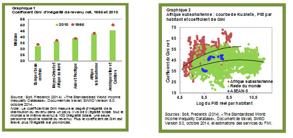 Il n’est donc pas surprenant que la réduction des inégalités fasse partie intégrante des Objectifs de développement durable adoptés par les dirigeants mondiaux lors du sommet des Nations Unies en septembre. Je parle souvent avec mes collègues des progrès de l’Afrique subsaharienne dans ce domaine. Malheureusement, l’Afrique subsaharienne fait partie des régions du monde, avec l’Amérique latine, où les inégalités sont les plus prononcées (graphique 1). De fait, l’inégalité y semble beaucoup plus marquée à tous les niveaux de revenu que partout ailleurs (graphique 2).