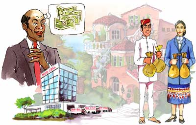 El Fondo Monetario Internacional se creó hace 50 años para que las divisas pudieran circular con más libertad y facilidad entre los países miembros. Lo que hace ahora es ayudar a los países miembros a que tengan siempre suficientes divisas para poder seguir haciendo negocios con el resto del mundo. Ahora te invitamos a que nos sigas a un mundo imaginario en el que el FMI no existe. Allí encontrarás un país en desarrollo que sufre una escasez de divisas y del cual te haremos empresario. Pronto verás lo difícil que es hacer negocios con otros países sin un FMI que pueda ayudar a solucionar una crisis de divisas. |