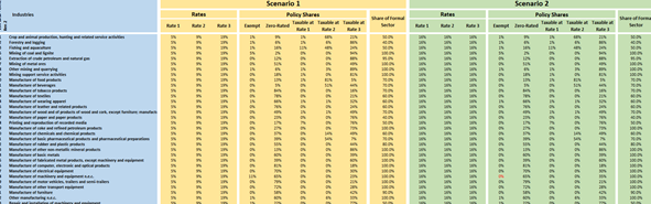 A user-friendly VAT model could use a Dashboard that combines model-simulated results for easy viewing. The sample Dashboard presented below reflects VAT revenue yield under alternative policy scenarios as well as the difference in VAT revenue between them.