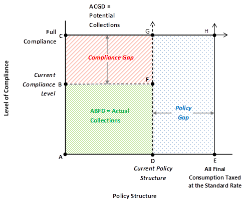 For further discussion of the approximation method and an illustration using real data, see Pierre-Pascal Gendron (2017), “Real VATs vs the Good VAT: Reflections from a Decade of Technical Assistance,” Australian Tax Forum, Vol. 32, No. 2, pp. 257-282.