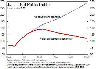 23. To maintain these positive spillovers in light of declining trend growth and rising public debt, fiscal and structural reforms are essential. Fiscal consolidation would have long-term benefits for its partners by reducing tail risks from a disruption in Japan’s large sovereign debt market and freeing up domestic savings to help lower global interest rates. Speedy implementation of Japan’s growth strategy would also support fiscal adjustment and strengthen global final demand.