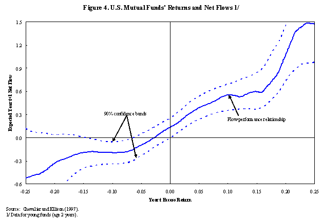 The expansion in the variety of intermediaries and financial transactions has major benefits, including reducing the transaction costs of investing, expanding access to capital, allowing more diverse opinions to be expressed in the marketplace, and permitting better risk sharing. These changes have made society better off. But along with the opportunities to do good, they have created opportunities to make things worse. The balance between the two is determined by the incentives of players. I will now turn to incentives and potential sources of distortion, without in any way intending to minimize the enormous benefits we have derived. In the 1950s and 1960s, before the changes that have swept the financial world, bank managers were paid a largely fixed salary. Given that regulation kept competition muted, there was no need for shareholders to offer managers strong performance incentives (such incentives might even have been detrimental as it would have tempted bank managers to reach out for risk). The main check on bank managers making bad investment decisions was the bank's fragile capital structure (and possibly regulators). If bank management displayed incompetence or knavery, depositors would get jittery and possibly run. The threat of this extreme penalty, coupled with the limited upside from salaries that were not buoyed by stock or options compensation, combined to make bankers extremely conservative. This served depositors well since their capital was safe. Shareholders, who enjoyed a steady rent because of the limited competition, were also happy. Of course, customers suffered but it is only in the new deregulated, competitive environment that the customer is king. In this new environment, however, investment managers can't be provided the same staid incentives as bank managers of yore. Because they need the incentive to search for good investments, their compensation has to be sensitive to investment returns, especially returns relative to their competitors. Furthermore, the market provides its own incentives. New investors are attracted by the high returns generated by a manager. And current investors, if dissatisfied, do take their money elsewhere although they often suffer from inertia in doing so. Figure 4 plots the flows into an average U.S. mutual fund as a function of the returns it generates. As you can see, positive excess returns generate substantial inflows while negative returns generate much milder outflows. Since compensation also varies with assets under management, overall, investment managers face a compensation structure that moves up very strongly with good performance, and falls, albeit more mildly, with poor performance. In the jargon of economists, the compensation structure is convex in returns. The compensation structures for hedge fund managers or Therefore, the incentive structure for investment managers today differs from the incentive structure for bank managers of the past in two important ways. First, there is typically less downside and more upside from generating investment returns, implying that these managers have the incentive to take more risk. Second, their performance relative to other peer managers matters, either because it is directly embedded in their compensation, or because investors exit or enter funds on that basis. The knowledge that managers are being evaluated against others can induce superior performance, but also perverse behavior of various kinds. Let me highlight two particularly worrisome behaviors, worrisome because they can feed on each other. One type is to take risk that is concealed from investors. Since risk and return are related, when the manager conceals risk, it looks as if he outperforms peers given the risk he apparently takes. Typically, the kinds of risks that can most easily be concealed, given the requirement of periodic reporting, are "tail" risks-that is, risks that have a small probability of generating severe adverse consequences and, in exchange, offer generous compensation the rest of the time. For example, I could write guarantees against a creditor defaulting. I will earn the premiums on this guarantee most of the time, without any additional volatility on my portfolio holdings. Most of the time, I will look as if I am outperforming my comparison group for I will have generated returns with no apparent risk. But every once in a while, disaster will strike and the creditor will default. My true risk profile will then be revealed but too late for my investors. Every generation of investment managers finds a new way to goose up returns for seemingly no additional risk, only to reconfirm the old adage: There is no return without risk. A second behavior is to herd with other investment managers on investment choices, because herding provides insurance the manager will not underperform his peers. However, herd behavior can move asset prices away from fundamentals. Both behaviors can reinforce each other during an asset price boom, when investment managers are willing to bear the low probability "tail" risk that asset prices will revert to fundamentals abruptly, and even write guarantees against it, while the knowledge that many of their peers are herding on this risk gives them comfort that they will not underperform significantly if boom turns to bust. These behaviors can be compounded in an environment of low interest rates. Some investment managers have fixed rate obligations which force them to take on more risk as rates fall. Others like hedge funds have compensation structures that offer them a fraction of the returns generated, and in an atmosphere of low returns, the desire to goose them up increases. Thus not only does the incentives of some participants to "search for yield" increase in a low rate environment, but also asset prices can spiral upwards, creating the conditions for a sharp and messy realignment. So long as there are some sober participants who can come in to pick up the pieces when 
