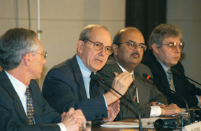 MR. CAMDESSUS: Now, the first part of your question: we didn't see the crisis coming. What is true is that we didn't foresee last July that we would have such a formidable crisis developing in December in Korea. This is true. But if you read our documents, from the Article IV consultation in 1996 we were putting strong pressure on the Korean authorities to take very seriously the problem of the weaknesses of their financial sector, the problem of their current account deficit and the problem generated by the uneven opening of their economy and the restrictions put on foreign capital inflows.