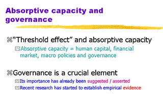 Now, the absorptive capacity discussion comes up in the context of researchers saying, okay, so what is it that seems to be a prerequisite for enjoying the benefits of financial integration and/or globalization? And, once again, let's try to isolate some of the key variables, and let's try to do so with rigor, so that we don't draw these unfounded inferences.