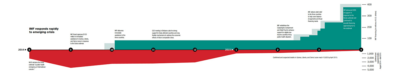 The financial assistance to combat the epidemic fits within the IMF’s mandate to support its member countries with balanceof- payments support in times of economic and social stress. Each step of the response was carefully considered by the Executive Board, which approved all requests for financing and the creation of the CCRT by reforming the Post-Catastrophe Debt Relief Trust.