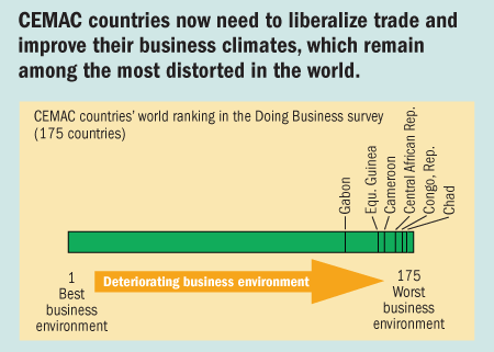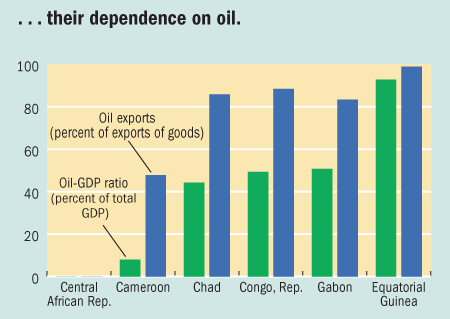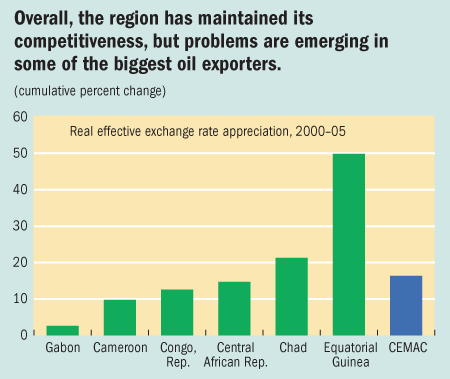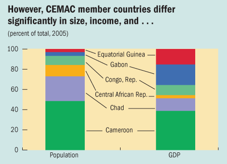 CEMAC For the Central African Economic and Monetary Community (CEMAC)—Cameroon, Chad, the Central African Republic, Equatorial Guinea, Gabon, and the Republic of Congo—oil is the big story. The region has a common currency—the CFA franc, which is pegged to the euro—and a set of institutions to promote regional economic integration.
