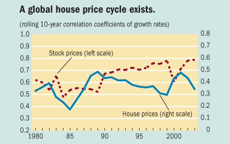 Interestingly, house prices in the industrial countries move together despite the fact that housing is a nontradable asset. This correlation suggests there is a global house price cycle, driven at least partly by world interest rates. Thus, the downturns that have already occurred in a number of countries may be followed by slowdowns in other housing markets that are currently still seeing strong price increases.