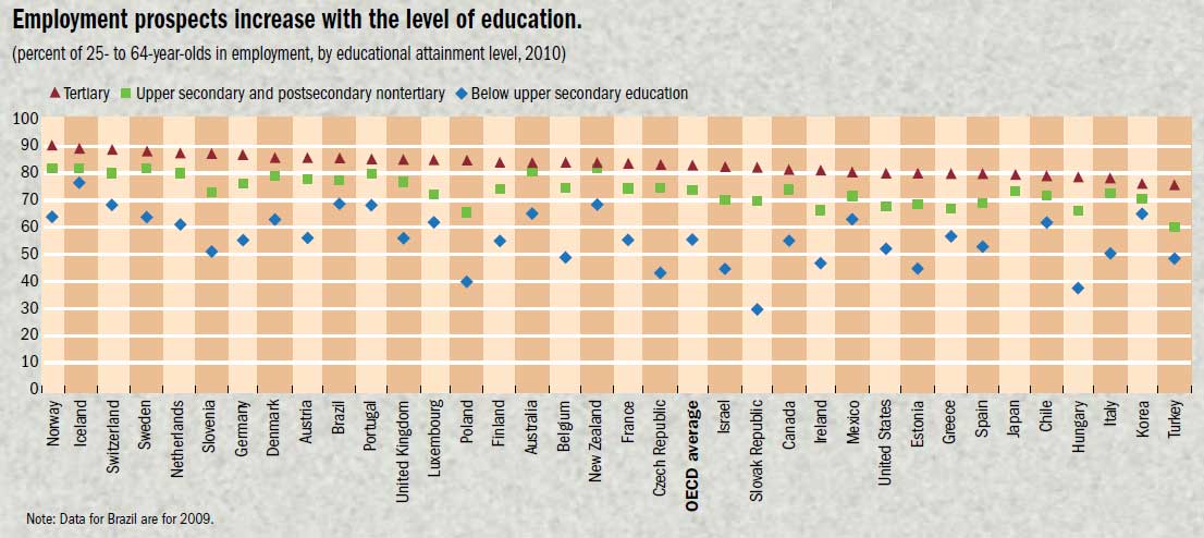 The recent economic crisis reinforced the importance of a good education. People with more education were in general better able to get and keep jobs, even during the global financial crisis, according to a new study from the Organization for Economic Cooperation and Development (OECD).
