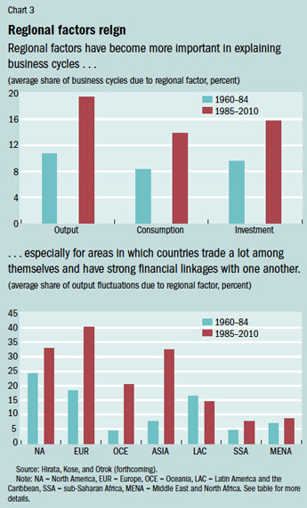 The number of regional arrangements with the objective of greater trade and financial integration is likely to increase in the coming years. These arrangements can generate economic benefits, but, as recent developments in Europe have clearly demonstrated, regionwide policies can also have serious consequences for growth and stability at the country level. These developments, along with the emergence of regional business cycles we documented here, call for a better understanding of the design and implications of regional policies. ■