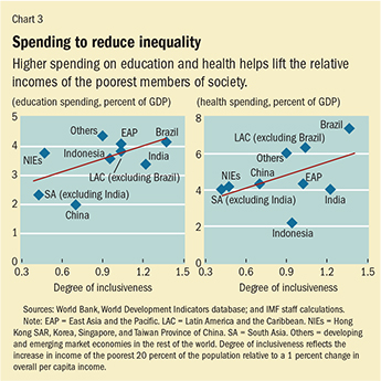 If Asian countries pursue policy measures to broaden the benefits of growth, notably enhanced spending on health and primary and secondary education, stronger social safety nets, labor market interventions for lower-income workers, and financial inclusion, they could stem the tide of rising inequality.