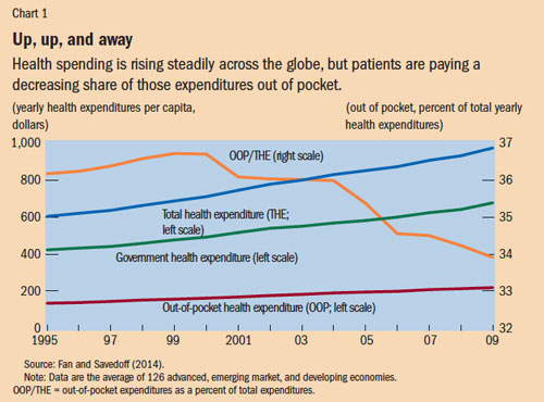 Economists might add a third certainty: health spending growth. As countries grow economically, two important trends converge as part of a health financing transition—health spending per person increases and out-of-pocket spending on health services decreases (see Chart 1).