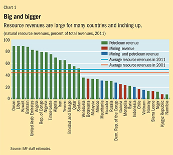 In recent years, high commodity prices and new natural resource discoveries have increased many countries’ resource revenues, both as a share of the budget and in percent of GDP, offering new prospects for raising the population’s standard of living (see Chart 1). But few countries stand out as good examples of effective resource wealth management. Botswana, Chile, Norway, and the U.S. state of Alaska are some exceptions.