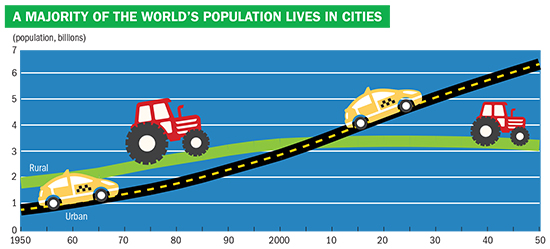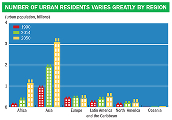 Prepared by Natalie Ramírez-Djumena, a Senior Editor on the staff of Finance & Development. Text and charts are based on World Urbanization Prospects: The 2014 Revision, Highlights, published by the United Nations in July 2014. The report is available at esa.un.org/unpd/wup/Highlights/WUP2014-Highlights.pdf