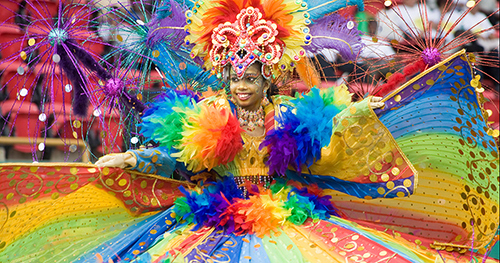 The new $50 note is rich in color and highlights the country’s natural beauty and cultural heritage. The bill’s golden color celebrates the central bank’s 50-year jubilee. Its dramatic design includes a red hibiscus flower, a young woman in carnival attire, and a red-capped cardinal. The bird, whose colors are those of the country’s flag, is poised for flight against a transparent polymer plastic window.