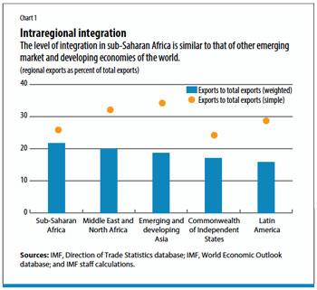 Looking at a wealth of growing linkages across sub-Saharan Africa and drawing on the IMF’s bilateral trade statistics, our recent work suggests it is the latter. We document that the subcontinent is much more integrated today than in the past. It may come as a surprise to some, but the level of integration in sub-Saharan Africa is actually comparable to that in the world’s other developing and emerging market economies (see Chart 1).