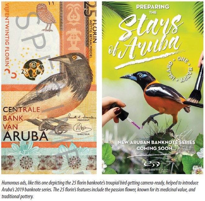 It is said that laughter is the best medicine, and for Arubans, a good dose of humor was just the remedy to help them accept the first new currency design since 1990. Before last year’s overhaul, the florin had been upgraded only once, in 2003, but the former series had become outdated and a target for counterfeiting. Armed with a small team in a small bank on a small island, the Central Bank of Aruba (CBA) set out to upgrade its currency—a journey that lasted seven years, celebrated some native stars, and won the country an international award.