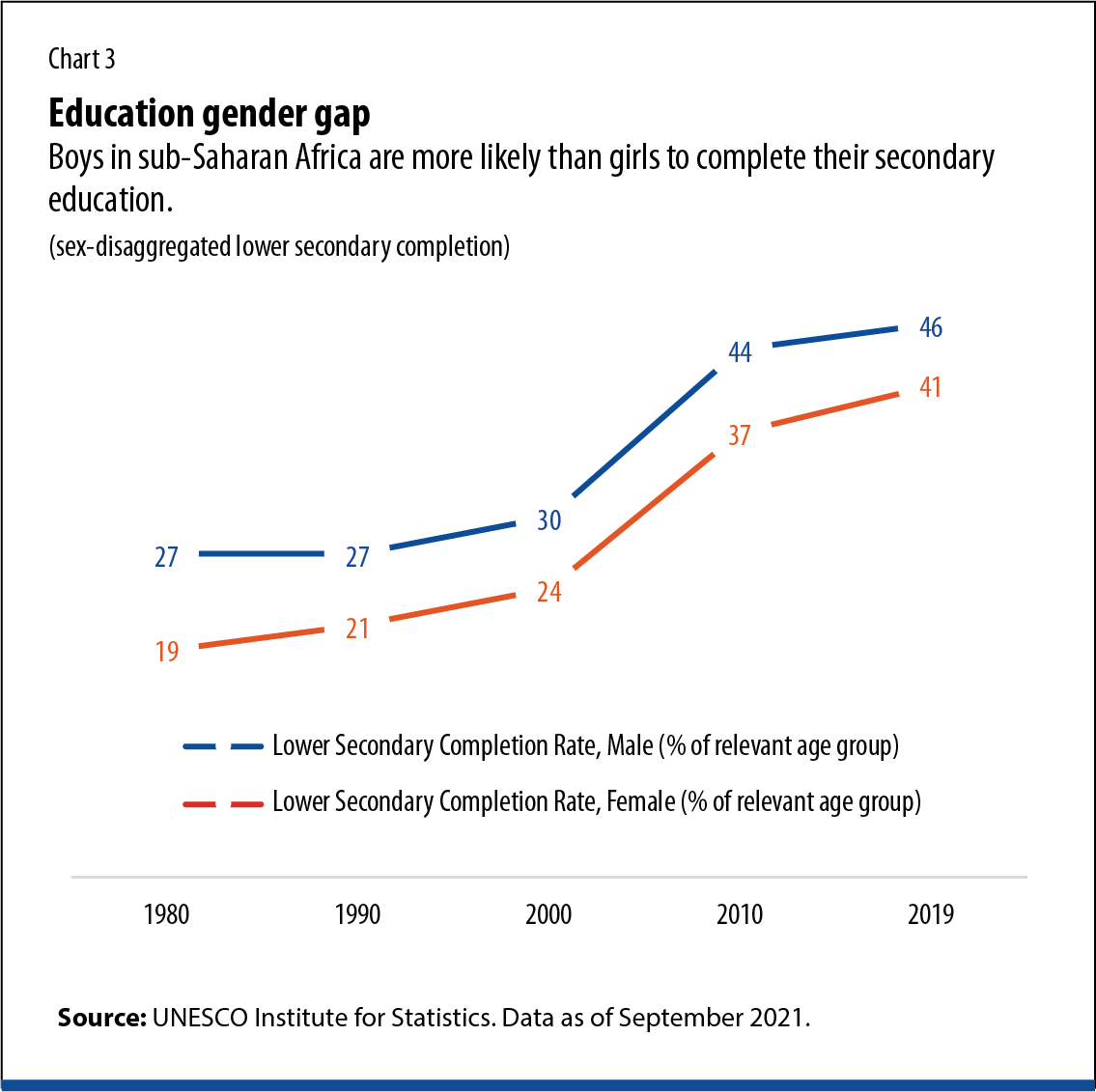 UNESCO. 2021. “Lower Secondary Completion Rate, Sub-Saharan Africa.” UNESCO Institute for Statistics. Data as of September 2021.