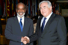 René Préval, President of Haiti, with IMF Managing Director Dominique Strauss-Kahn (IMF photo).