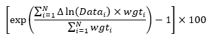 For the inflation of emerging market and developing economies (EMDE), the inflations of individual EMDE economies are based on logarithmic differences, log(CPIt)-log(CPIt-1), and the aggregates are calculated as geometric averages. This exception only applies to the inflation series of all EMDE-related groups and the world.
