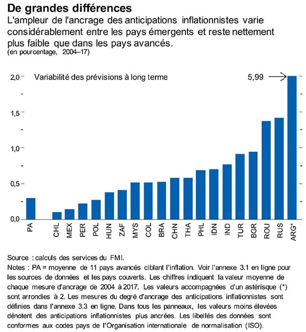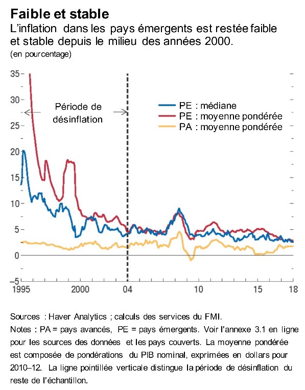 Depuis le milieu des années 2000, l'inflation dans les pays émergents reste remarquablement faible et stable, contrairement à la situation dans les années 1990. Cependant, l'augmentation des taux d'intérêt dans les pays avancés tels que les États-Unis a déclenché, au cours des derniers mois, des dépréciations de la monnaie parfois très prononcées dans les pays émergents; leur capacité d'écarter les pressions inflationnistes est mise à l'épreuve.