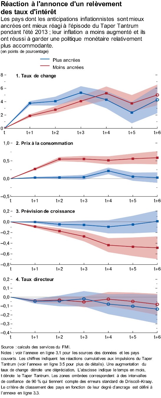 Ces résultats ont des conséquences pour la période de normalisation monétaire dans les pays avancés. Une hausse temporaire des taux d'inflation dans les pays émergents est à prévoir si les conditions financières mondiales se durcissent et si la monnaie des pays émergents se déprécie. Cependant, si les anticipations sont bien ancrées, la stabilité des prix ne sera pas compromise.