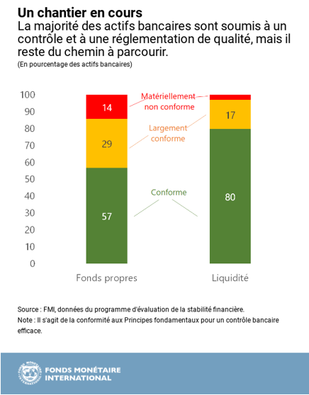 - Banque parallèle. Les pays ont accompli des progrès sur le front de la surveillance et, dans une moindre mesure, de la réglementation prudentielle des banques dites parallèles, par exemple les sociétés de gestion de portefeuille. Il faut néanmoins aller encore plus loin et, dans de nombreux pays, dont la Chine et d’autres pays émergents, la croissance rapide de la banque parallèle pourrait créer des risques pour d’autres composantes du système financier.