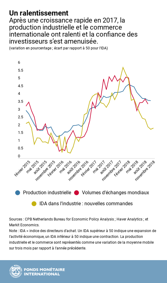 L’économie mondiale a entamé l’année 2018 sur une note positive à la suite de l’accélération de la production mondiale et des échanges tout au long de 2017. Mais à mesure que les investisseurs ont perdu confiance dans les perspectives économiques mondiales, l’embellie s’est essoufflée.