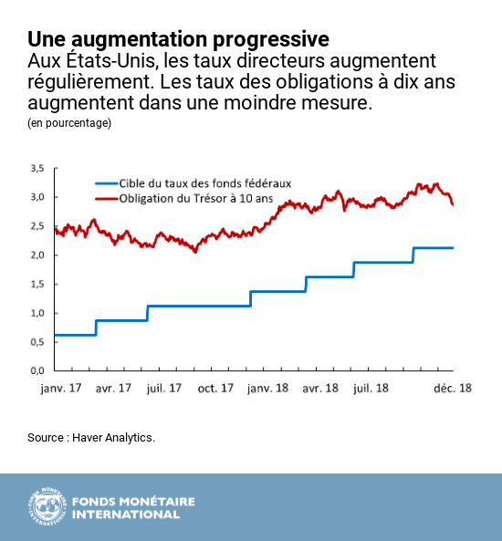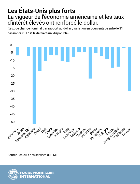 La croissance et les taux d’intérêt ayant augmenté plus rapidement aux États-Unis que dans les autres grands pays, le dollar s’est apprécié par rapport à la plupart des autres monnaies en 2018.