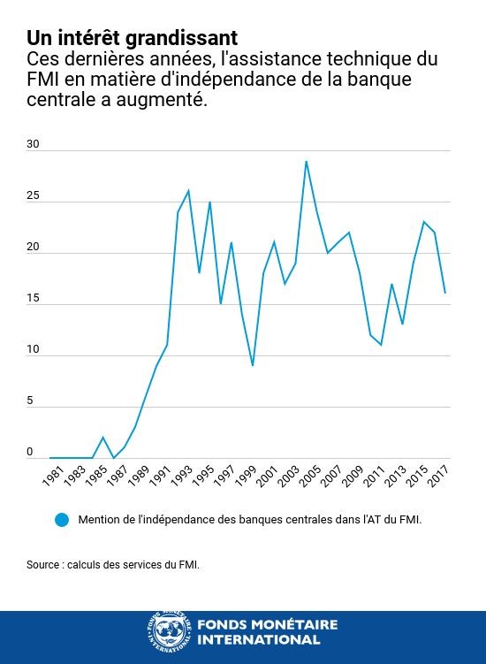 En effet, l’orientation globale et la composition des travaux menés par le FMI auprès des autorités monétaires confirment que cette lutte est bien réelle. Pour un quart des missions d’assistance technique effectuées par les services du FMI, les échanges ont, d’une façon ou d’une autre, porté sur l’indépendance de la banque centrale.