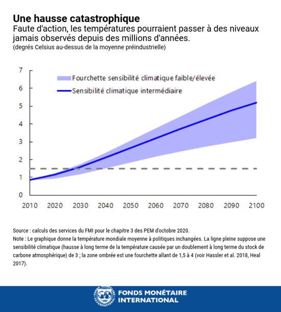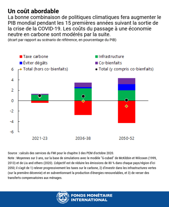 Dans la dernière édition des Perspectives de l'économie mondiale, le FMI estime que les instruments de politique économique peuvent aider à atteindre l’objectif de neutralité carbone d'ici à 2050, alors même que le monde essaie de se remettre de la crise de la COVID‑19. Il montre que ces politiques peuvent être menées d’une manière qui favorise la croissance économique, l'emploi et l'égalité des revenus.
