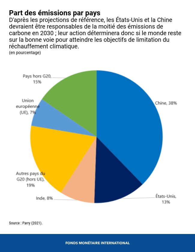 Le plan d’action des États-Unis vise à encourager les grands pays émetteurs à se montrer plus ambitieux en matière d’atténuation des changements climatiques. La coordination internationale peut permettre de rassurer ceux qui craignent que ces mesures aient des incidences sur la compétitivité ou que certains pays renoncent à leurs engagements en la matière. Pour compléter les engagements pris par les pays dans le cadre de l’Accord de Paris, un mécanisme intéressant consisterait à établir un prix plancher international du carbone, autrement dit les grands pays émetteurs conviendraient d’un prix minimum à appliquer à leurs émissions de carbone. Il serait possible de déterminer ce prix plancher de façon équitable en prévoyant des obligations plus strictes pour les pays avancés, une aide pour les pays à plus faible revenu, ou ces deux éléments à la fois. Il pourrait également s’appliquer avec souplesse pour tenir compte d’autres démarches aux incidences équivalentes sur les émissions, adoptées dans les pays où la tarification est difficile à mettre en place.