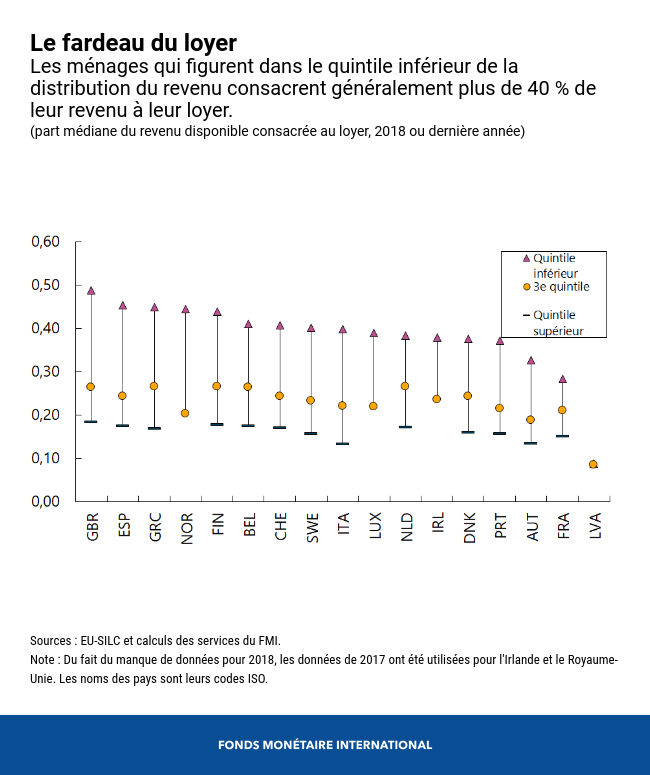Durant la dernière décennie, le logement locatif est devenu plus onéreux dans de nombreux pays européens. D’après l’étude que nous avons récemment menée sur 17 pays européens avancés, un ménage locataire lambda dépensait près de 25 % de ses revenus pour payer son loyer en 2018 et une jeune famille, près d’un tiers. Cette part atteignait 40 % pour les ménages appartenant au quintile inférieur de la répartition des revenus.