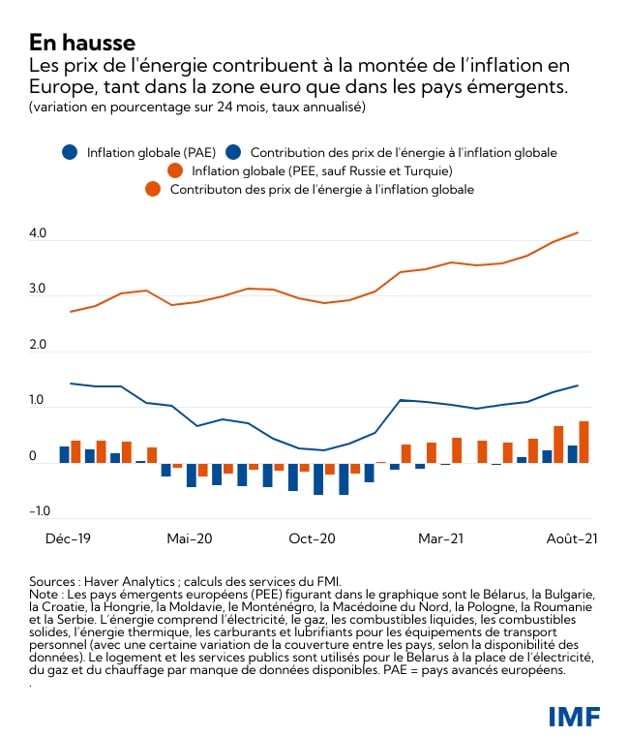 Dans plusieurs pays émergents d’Europe, où la production et l’emploi sont déjà proches des niveaux d’avant la pandémie, le terrain pour d’éventuels effets secondaires est plus fertile. En outre, les anticipations d’inflation ont commencé à augmenter et les répercussions sur les salaires devraient être plus fortes à mesure que les capacités inutilisées sur le marché du travail continuent de diminuer. Ces pays ont, à juste titre, commencé à relever leurs taux directeurs pour les ramener aux niveaux antérieurs à la pandémie. Certes, les banques centrales doivent suivre de près l’évolution des salaires, mais, mêmes dans les pays émergents, elles n’ont pas besoin de précipiter leur démarche compte tenu du caractère temporaire de l’inflation.