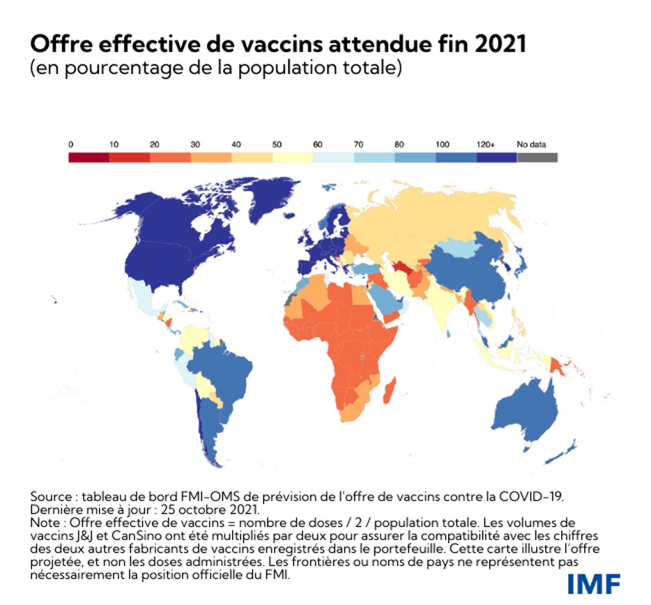 Le FMI vient de réviser à la baisse sa prévision de croissance mondiale pour cette année, à 5,9 % . Les perspectives sont très incertaines, et risquent de se dégrader. L’inflation et la dette augmentent dans de nombreux pays. Les divergences économiques deviennent plus persistantes : trop de pays en développement manquent cruellement de vaccins et de ressources pour soutenir leur reprise.