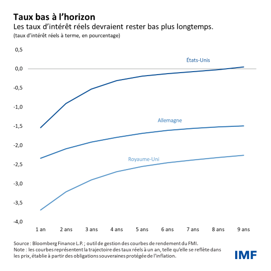 Ces taux d’intérêt réels très bas s’expliquent par le pessimisme à l’égard de la croissance économique au cours des prochaines années, par l’excès d’épargne à l’échelle mondiale en raison du vieillissement démographique, et par la demande d’actifs sans risque dans le contexte d’une montée de l’incertitude amplifiée par la pandémie et les récents problèmes géopolitiques.
