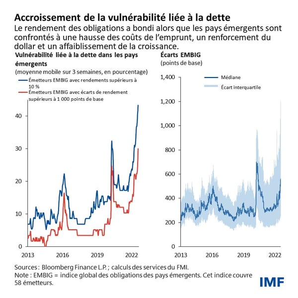 - un durcissement des conditions financières mondiales pourrait provoquer une vague de surendettement dans les pays émergents et les pays en développement ;