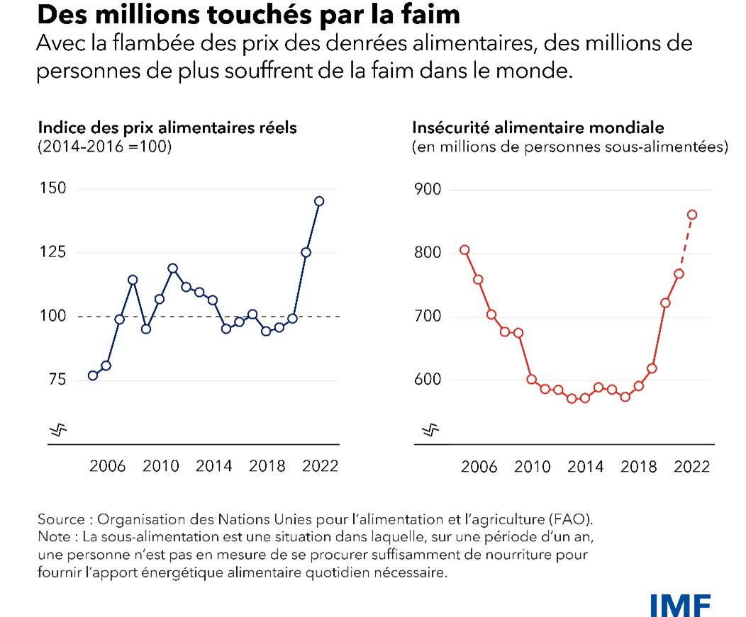 La situation est devenue encore plus inquiétante avec la guerre en Ukraine, qui a fait grimper davantage les prix des aliments et des engrais, pénalisant les importateurs et incitant plusieurs pays à restreindre les exportations.