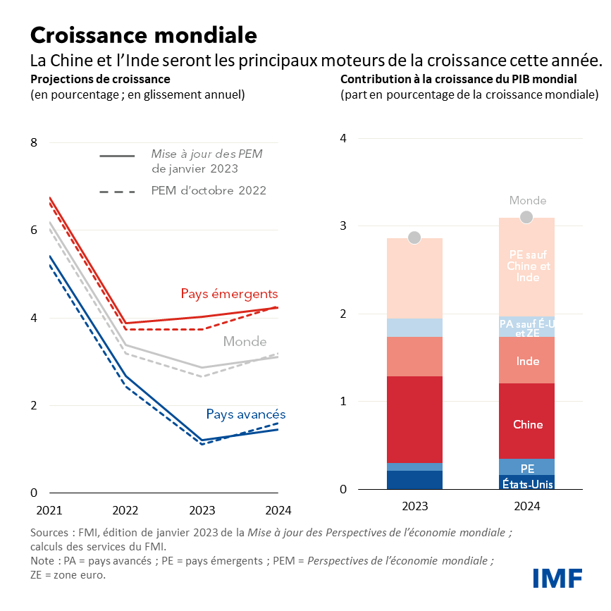 En dépit de ces vents contraires, les perspectives sont moins sombres par rapport aux prévisions que nous avions établies en octobre. Nous pourrions assister à un tournant, avec une croissance dans le creux de la vague et une inflation en baisse.