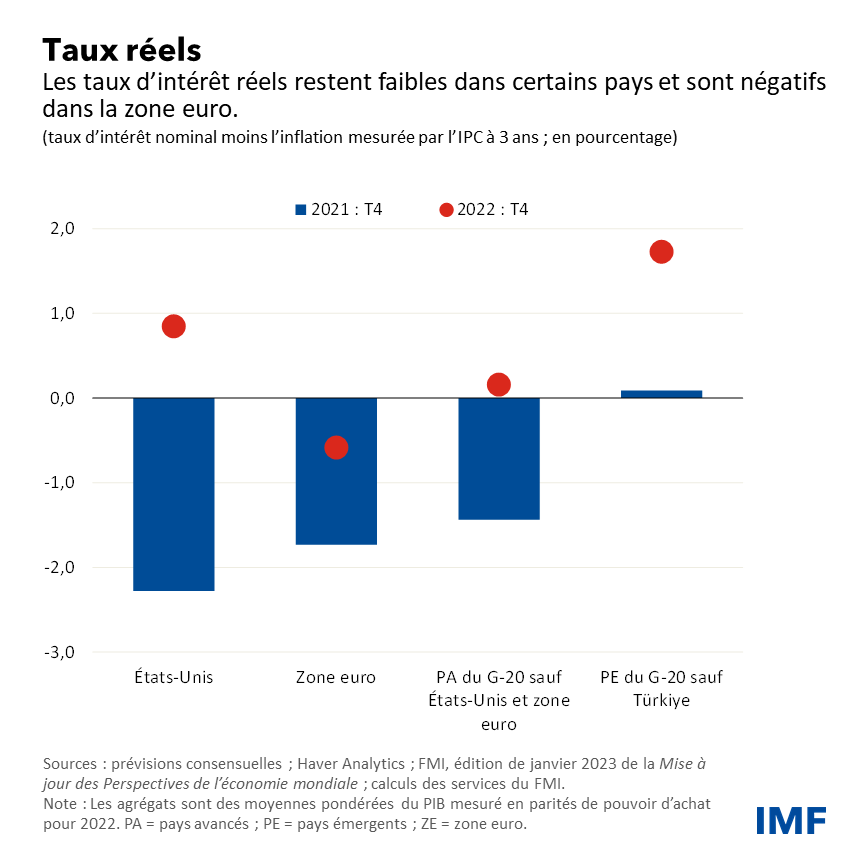 Les données sur l’inflation sont encourageantes, mais la bataille est loin d’être gagnée. Les effets de la politique monétaire commencent à être ressentis, avec notamment un ralentissement de la construction de nouveaux logements dans de nombreux pays. Pourtant, les taux d’intérêt corrigés de l’inflation restent faibles, voire négatifs, dans la zone euro et dans d’autres pays, et une forte incertitude règne quant à la rapidité et à l’efficacité du durcissement monétaire dans de nombreux pays.