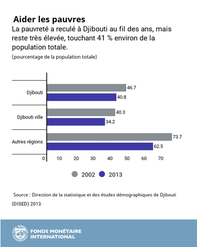 Ce petit État situé dans une région aride de la Corne de l’Afrique, voisin de l’Éthiopie, pays enclavé, est fortement tributaire de son port en eau profonde. Djibouti développe son infrastructure de transports et de services publics pour tirer profit de sa situation stratégique qui en fait un centre de transbordement et un lieu d’établissement de bases militaires.
