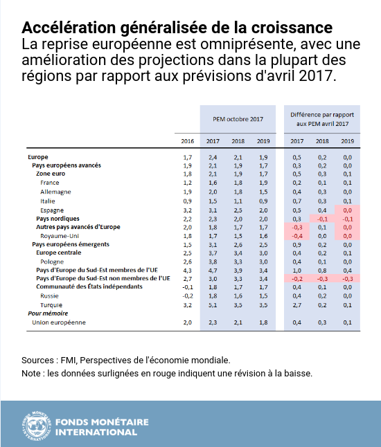 D’après les dernières Perspectives économiques régionales du FMI, parues le 13 novembre, la croissance est au rendez-vous dans tous les pays européens et le continent est devenu un moteur du commerce mondial. Toutefois, les pays doivent prévoir une marge de manœuvre budgétaire pour être en mesure de braver des temps moins propices.