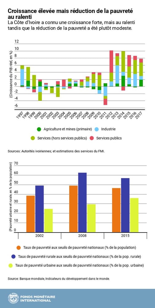 Le FMI a complété récemment sa revue annuelle de l’économie ivoirienne. La reprise issue de la normalisation politique et de la bonne mise en œuvre des réformes a contribué à une très bonne tenue de l’économie du pays depuis 2012. La mise en œuvre de réformes structurelles innovatrices sera nécessaire au maintien du développement au même rythme que dans le passé récent et au partage plus universel des bienfaits de la croissance.