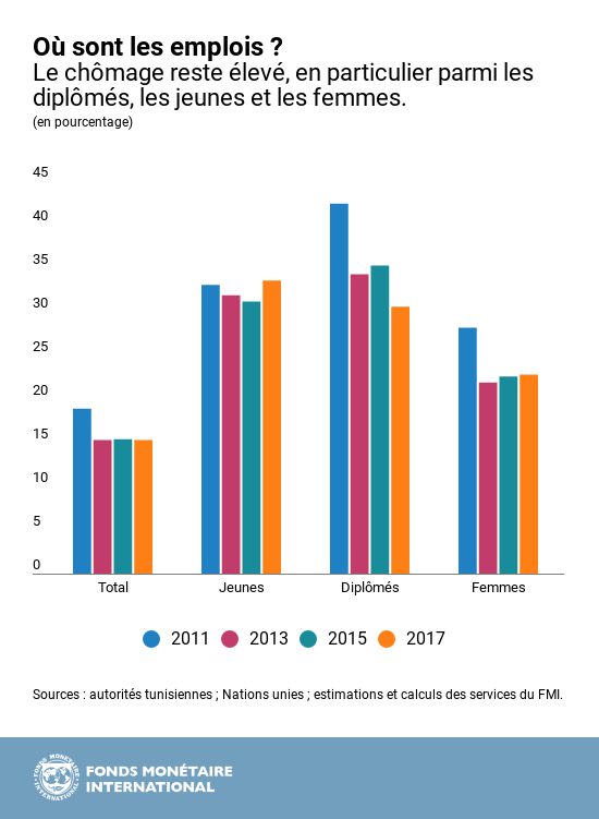Pour vaincre la réticence des investisseurs et gagner leur confiance, les autorités doivent tout à la fois renforcer la gouvernance et l’efficacité de leurs organes de lutte contre la corruption, mettre en place un climat des affaires concurrentiel, appliquer un taux de change à sa juste valeur, inciter les investissements porteurs de productivité et alléger les formalités administratives. Elles contribueront ainsi à libérer le potentiel que présente le secteur privé pour offrir davantage de débouchés et d’emplois à tous les Tunisiens.