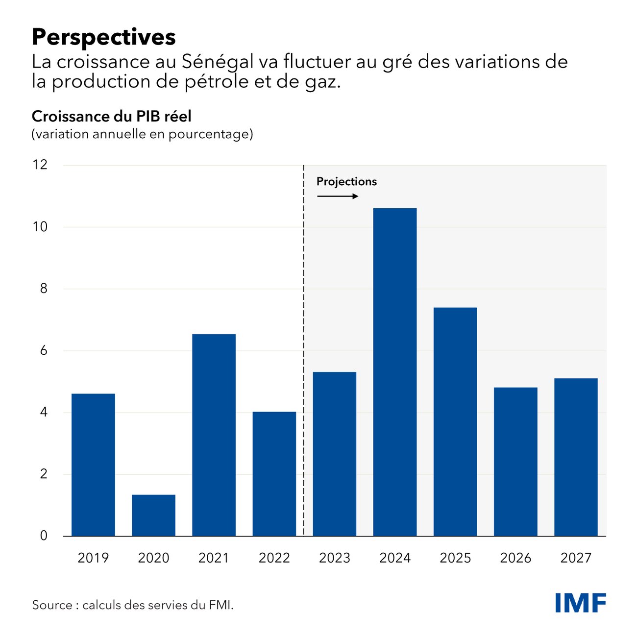 Le pays présente toutefois des perspectives de croissance robustes et ces dernières sont renforcées par la production de pétrole et de gaz, qui donnera un coup de fouet à l’économie au cours des prochaines années. La croissance devrait accélérer pour atteindre 10,6 % en 2024 et 7,4 % en 2025, tandis que la croissance hors hydrocarbures devrait s’établir aux alentours de 6 %, en supposant que les autorités appliquent des politiques macroéconomiques prudentes et qu’elles mettent résolument en œuvre des réformes structurelles dans le cadre des programmes appuyés par le FMI.