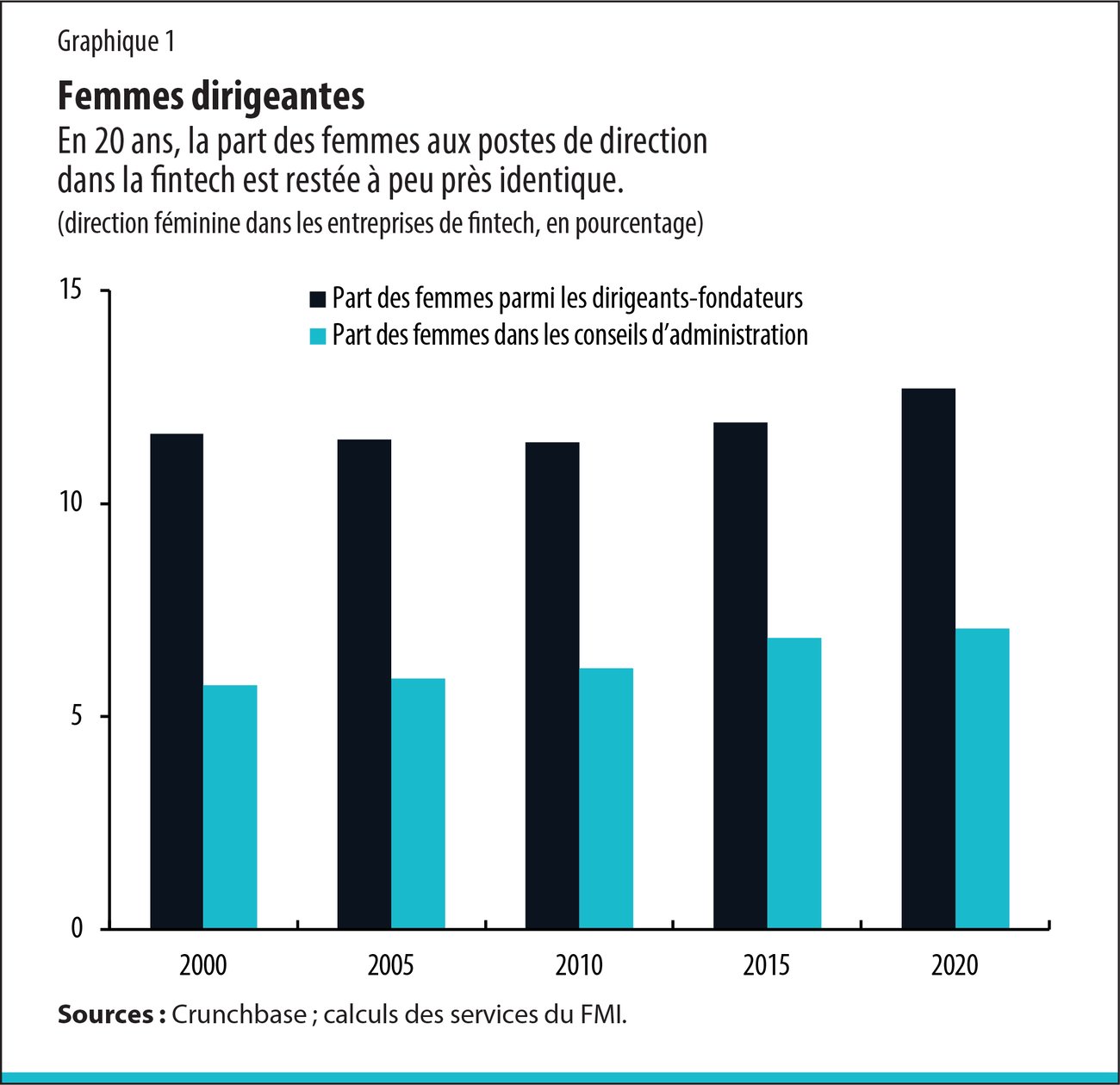 Est-il vraiment important que des femmes soient à la tête d’entreprises de fintech ? Sans doute, si l’on en juge par notre constat d’une relation positive entre la présence d’un plus grand nombre de femmes au conseil d’administration et le chiffre d’affaires d’une entreprise, ainsi que le financement qu’elle reçoit pour ses investissements futurs. Une hausse de 10 % de la proportion de femmes dans les conseils d’administration est liée à un accroissement d’environ 13 % des recettes et des fonds obtenus par les entreprises. Il existe une relation positive, confirmée par les recherches et décrite dans des études, entre la diversité des genres dans une entreprise et les résultats de celle-ci (Christiansen et al., 2016). Les entreprises où la part de femmes cadres est plus élevée que la moyenne réalisent des chiffres d’affaires plus importants et reçoivent plus de financements.