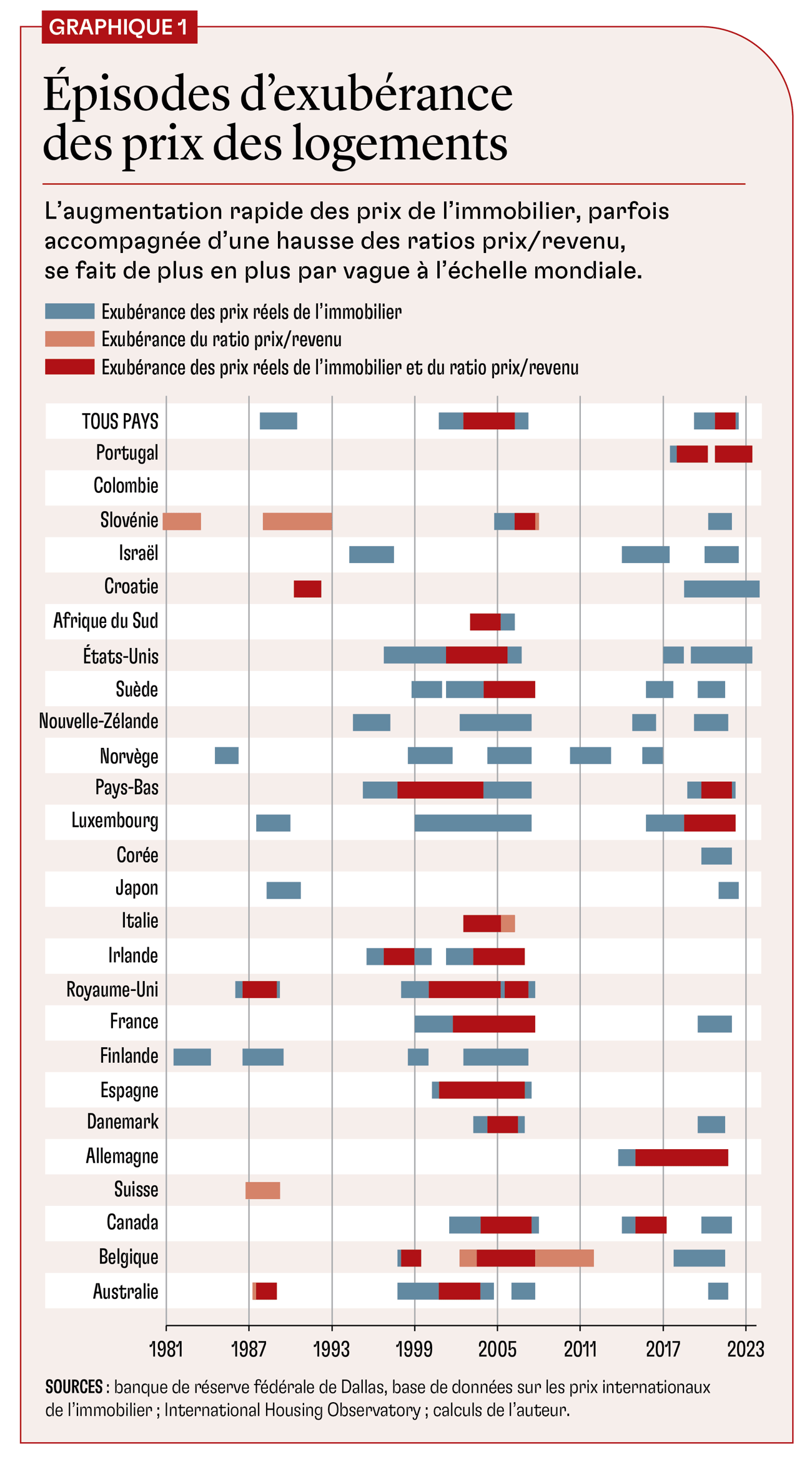 Au premier rang de ces outils figurent de meilleures méthodes de repérage des bulles des prix des actifs. Les modèles standard d’évaluation des actifs montrent que les prix sont influencés par les rendements courants et les anticipations de valeur à la revente. Une bulle se forme lorsque le prix d’un actif dépasse sa valeur intrinsèque parce que les acteurs anticipent une poursuite de son appréciation. Le marché de l’immobilier résidentiel, caractérisé par une offre obstinément inélastique, illustre cette dynamique, souvent nourrie par la peur de manquer une occasion ou par un comportement spéculatif.